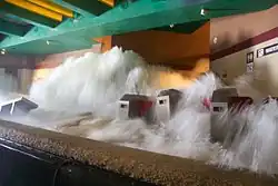 The flooding train station at the start of episode 15 was the earthquake attraction on the Studio Tour, depicted here in 2012[2]