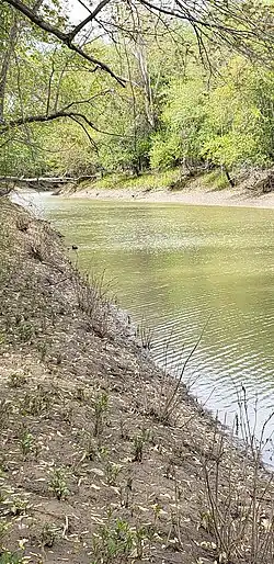 The stream source is at 38°34′45″N 90°39′14″W / 38.57917°N 90.65389°W / 38.57917; -90.65389 and the confluence is at 38°40′48″N 90°34′10″W / 38.68000°N 90.56944°W / 38.68000; -90.56944.[1]
