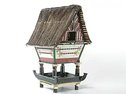 Boraspati magical motifs (Batak gorga) are often painted on the walls of a Batak house or a granary. Together with other motifs, they form a magic to invoke wealth and fertility into the house.[6]