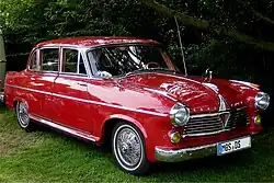 The Borgward Hansa 2400 was an executive six-cylinder saloon (E-segment) presented in 1951, and manufactured by the Bremen based auto-manufacturer Carl F. W. Borgward GmbH from 1952 until 1959. The car was launched as a four-door fastback saloon; a longer-wheelbase notchback version appeared a year later. The Hansa 2400 suffered from teething troubles including inadequate brakes and problems with the automatic transmission Borgward developed for it.[2] In a small closely contested market, the large Borgwards lost out to less flamboyant models from the German south.