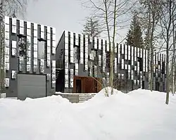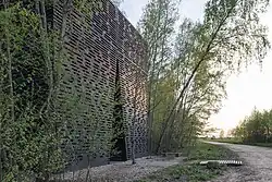 A first for Russia, the Yeltsin Center is a presidential centre on the model of US presidential libraries. It is a social, cultural and educational institution built in the city of Yekaterinburg, birthplace of President Boris Yeltsin. The centre houses a museum (2016's European Museum of the Year), art gallery, educational centre, documentary film centre, bookshop, café and other public facilities. Due to lack of vacant sites, Bernaskoni redesigned an existing business centre, to which he added a new form. This was achieved mainly through a curtain wall, covering half the premises in a sheet of steel, perforated with a series of openings displaying rotational symmetry. The resultant Center is a modest and neutral structure that nevertheless has a visual identity and silhouette distinct from any other building in Yekaterinburg, which the architect has characterized as its “urban supergraphics”.[7]