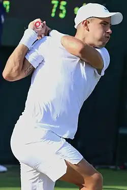 Borna Ćorić (Croatian pronunciation: [bôːrna tɕǒːritɕ];[3][4][5] born 14 November 1996) is a Croatian professional tennis player.[6] On 5 November 2018, he reached his best singles ranking of world No. 12.[7] In 2022, Ćorić became the lowest-ranked champion in Masters 1000 history when he won the Cincinnati title.[8] He is currently the No. 2 Croatian player.[9]