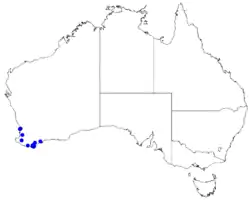 This boronia grows peaty heath, in winter-wet sawamps and along creeklines near Albany in the Jarrah Forest and Warren biogeographic regions.[2][3]