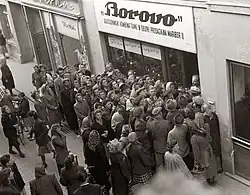 A crowd in front of a Borovo store in Maribor, Slovenia in 1955