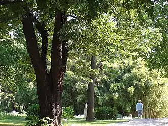 There are several old trees in the Botanical Garden, but one of the oldest is now no longer on the garden grounds. The Jacquin or Mozart plane tree (Platanus orientalis) is a Viennese natural monument and grows in front of the Department of Botany and Biodiversity Research. Due to property shifts, it now stands on the sidewalk in front of the department.