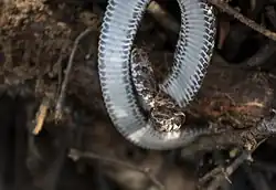 The strongly keeled dorsal scales are arranged in 21 rows at midbody. Ventrals 144–155; anal plate entire; subcaudals divided 33–35. It's mainly a terrestrial and nocturnal snake, but climb into low vegetation. Tend to hide its head when approached. Highly irascible, can strike violently with minimal provocation. Feeds mainly on rodents and lizards.[5][6]