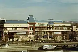 Groundbreaking for the hotel took place on July 1, 1981, with completion expected by March 1982. Walker Boudwin Construction Co. was the general contractor for the $3.5 million, contemporary style hotel, which would be four stories tall and include 130 rooms. It was designed with the potential to add two additional floors in the future. The hotel would allow Karl's Silver Club to expand its clientele, which primarily consisted of tour bus customers.[17] In August 1981, the city council unanimously approved Berge's request to increase the hotel to six stories and 206 rooms.[18] The $5.2 million hotel opened in March 1982.[19] The hotel, named Karl's Hotel, held a grand opening ceremony on April 16, 1982.[20][21] In May 1983, construction began on an $8 million renovation of the casino that would include convention space and new restaurants.[22][23] The expanded casino project ultimately cost $14 million, and was opened in September 1984, with the property now known as Karl's Hotel and Casino.[11]