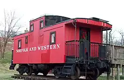Restored Norfolk & Western Railway caboose at the Bowie Railroad Museum