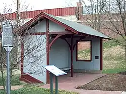 The Bowie Railroad Buildings comprise three small frame structures at the former Bowie train station, located at the junction of what is now the Northeast Corridor and the Pope's Creek Subdivision in the town center of Bowie, Maryland. The complex includes a single-story freight depot, a two-story interlocking tower, and an open passenger shed.[4] The station was served by passenger trains from 1872 until 1989, when it was replaced by Bowie State station nearby. The buildings were restored in 1992 as the Bowie Railroad Museum and added to the National Register of Historic Places in 1998.
