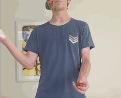 | The Reverse Shuffle | The reverse shuffle is a time-reversed shuffle throw. The ball begins below one of the box's airborne "side balls," as in a normal box, but is thrown diagonally upwards, and caught above the opposite "side ball". As such, it ends with the vamp ball raised in the upper corner of the pattern. | ![]() |