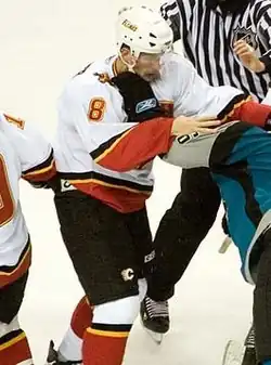 - ^ Fortney, Valerie (March 14, 2009). "Former Flame fights fires: NHLer suits up for different team". Calgary Herald. Calgary. p. B1.