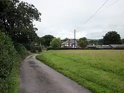 Nearby at grid reference SJ507456 is a deserted medieval village. The site, which aerial photography has shown to have small house platforms and a former road, is a Scheduled Ancient Monument.[2][3]