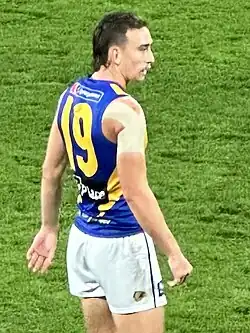 He was named to make his debut in Round 1 of the 2022 AFL season against Gold Coast at Optus Stadium,[5] collecting 10 disposals and 3 tackles during the match. He finished his first season at the Eagles having played 15 games, and was awarded the club's Emerging Talent award at the end of the year.[6]
