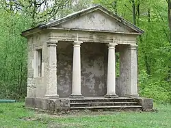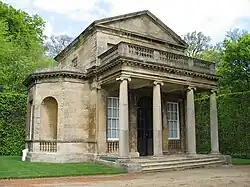The Open Temple was probably constructed in the early 18th century in Magnesian limestone ashlar and was built in a classical style as a single cell with a pedimented 3-bay facade.[14]