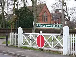 The trackbed through the station was relaid as a bridleway, and became part of the Downs Link, opened in 1984.[26][27] the platforms were restored and replica level crossing gates were installed in a two-year project, completed in 2005.[28] Since then, the station site has been part of the Bramley Conservation Area.[29]