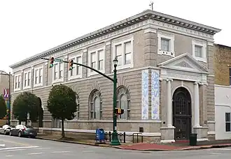 The Branch Banking Company Building is a historic bank building located in Wilson, North Carolina. It was built by the Branch Banking and Trust Company in 1903, and is a two-story, rectangular, blond brick building in the Classical Revival / Renaissance Revival style. A three bay extension was built in 1934. It features reddish sandstone detailing such as the window surrounds, pediment, columns and capitals; and an overhanging pressed metal cornice.[2] It was listed on the National Register of Historic Places in 1978.[1] It is located in the Wilson Central Business-Tobacco Warehouse Historic District.