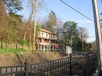 The Branchville Railroad Tenement is a historic commercial and residential building at the junction of Portland Avenue and West Branchville Road in Ridgefield, Connecticut. Built in stages between about 1853 and 1905, it is a distinctive reminder of the area's railroad-related history, serving as tenement housing for railroad workers before being converted to other residential and commercial uses. The building was listed on the National Register of Historic Places on August 12, 1982.[1] It continues to be used for commercial and residential purposes.