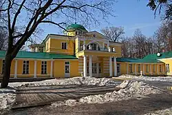 Naryshkins owned of Brattsevo nearly a century. In 1780 the village was bought from the daughters of Cyril Naryshkin be Count Alexander Stroganoff, who immediately conveyed Brattsevo to his wife Catherine Petrovna. Soon after Count Stroganoff divorced the Countess because of her romance with Ivan Rimsky-Korsakov (former favorite of Catherine the Great), leaving Brattsevo to Catherine Petrovna. Countess Catherine P. Stroganoff lived in Brattsevo with Ivan Rimsky-Korsakov until her death (1815). After her death, Brattsevo was owned by Rimsky-Korsakov. Apparently, c. 1813 upon a picturesque hill near the village was created a complex estates and parks, existing to our time. The architect is expected to be Andrey Voronikhin, a former serf of Counts Stroganoff. Palace was built as an imitation of Villa Rotonda by Andrea Palladio. After the death of Rimsky-Korsakov (1831), Brattsevo was owned by his illegitimate son from Catherine Stroganoff, Colonel Vassily Ladomirsky. In summer 1866 in Brattsevo lived the artist Ivan Shishkin. His picture "Noon. Neighborhoods of Moscow" is based on his etudes of Brattsevo. In 1852 there were 25 peasant yards and 168 residents in Brattsevo, in 1898 - 49 yards and 209 residents. In 1888 was opened the parish school. In 1879, on the banks of Skhodnya on the site of mill, first referred to in the will in 1565, was constructed a cloth factory of Ivan Suvirov. The local farmers were not employed at this factory, as the manufacturer has wished the workers to be absolutely dependent. At this factory in 1885 occurred one of the first workers strike in Russia.