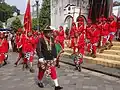 Flag name: Gula Klapa, mounted on spears named Kyai Slamet and Kyai Santri. Musical instruments: Tambour and flute Gendhing: Retadhedhali (macak), Dhayungan (march) |