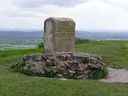 The stone marker on the hill, which also serves as a Triangulation station, commemorates the golden jubilee of Queen Victoria.[15]