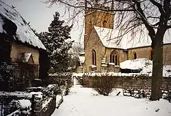 Partially inspired by the decorations at Wells Cathedral, the Grade I listed church building dates from the late 13th century onwards with medieval and some later additions; it seats 140. There is a band of bell ringers and a flower guild and a church and brass cleaning rota.[4][6] Some of the most striking features are Victorian glass but fragments of medieval glass also survive.[4][26] One window was designed by Frederick Preedy, a renowned Victorian church architects; he was born in 1820 at Offenham, near Evesham, and worked in Worcester before moving to London.[26]