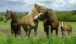 The Trait Breton is a French breed of draught horse. It originated in Brittany, in north-west France, from cross-breeding of local horses with various other breeds. It is strong and muscular, and often has a chestnut coat.