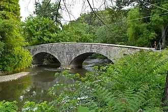 Bridge between Guilford and Hamilton Townships is a historic multi-span stone arch bridge located at Guilford Township and Hamilton Township in Franklin County, Pennsylvania. It is a 100-foot-long (30 m), bridge with two spans each measuring 36-foot-long (11 m). It was constructed before 1860. It crosses Conococheague Creek.[2]