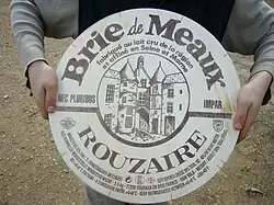 Brie de Meaux (French pronunciation: [bʁi mo] ) is a French brie cheese of the Brie region and a designated AOC product since 1980.[1] Its name comes from the town of Meaux in the Brie region. As of 2003, 6,774 tonnes (a decline of 13.4% since 1998) were produced annually.