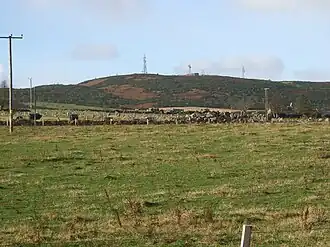 The top of the hill has a collection of transmitter sites for microwave transmission, by line-of-sight communication. The communication sites from here have direct links between North Sea Oil platforms and their headquarters in Aberdeen.