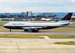![]() A British Asia Airways Boeing 747-400 in its Landor livery variant at Heathrow Airport in 1994 | |||||||