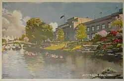 Kiosks, located both inside and outside the pavilions, represented individual companies within the Empire, encouraging commercial opportunities. One such was the Pear's Palace of Beauty (see below). Since the Exhibition was the first major event after the war, many firms produced a glut of commemorative items for sale.[36][37]