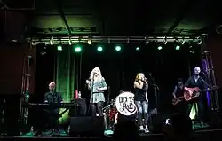 Hölljes (left) performing with Delta Rae in 2012