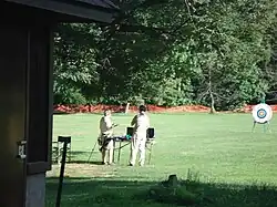On the outside of the roadway there are many paths through the wood of stately trees that is the western half of the park. This part of the park is mostly in Montclair. Many minor facilities and areas are in the Western half. On this side there is a road entrance, the Rose Garden, the Tennis Courts, and the Dog Park. In the south there is another car entrance. In the northwestern corner there is a smaller field and the Archery range.