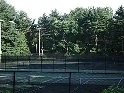 Going through the park is a circular, one way road, with three roads leading out of the park. There are many entrances for pedestrians, and there are two parking lots of approximately forty spots each. The road goes around parts of the park that have many athletic fields, park buildings, and other facilities. In the southern end of this area is the great meadow, and on the northern side there are the playgrounds, baseball/softball fields, and the stadium with the grandstand, track, and turf soccer field.[2]