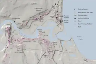 The Brooks River Archaeological District encompasses a large complex of archaeological sites along the banks of the Brooks River in Katmai National Park and Preserve in the U.S. state of Alaska. It includes at least twenty separate settlement sites with documented occupation dates from 2500 BCE to recent (post-contact) history. It was declared a National Historic Landmark in 1993.[3] The site is partly occupied by the Brooks Camp, one of the major visitor areas of the park.