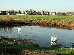 The higher part, The Common, is a large area of open land with houses around it. As at 2008 there were three ponds on the common, inhabited by a paddling of ducks in their breeding season. At one end of the common is the Bell public house, and the football pitch and bowling green.
