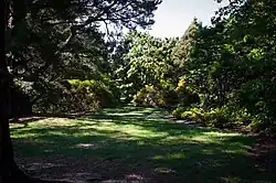 Located off of Akatarawa Road and Norbert Street, Harcourt Park is a large, major park in Upper Hutt.[4] It contains a small playground and a large playground, along with a toddlers' pool and public toilets at its eastern end. It has a soundstage in the south-western end near the Norbert Street entrance, which is used for small local concerts and events. There is a learn-to-ride cycle track on the park's northern side, as well as many wide lawns throughout the park for picnicking or relaxing. Wellington's Kiwi Holiday Park is located on its northern side off of Akaratawa Road. The Hutt River Trail runs along the western edge of the park.[5] Harcourt Park is a good spot to witness river terracing. The Gardens of Isengard scenes in the Lord of the Rings trilogy were filmed in Harcourt Park.[6]