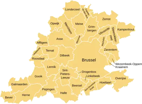 - the electoral arrondissement of Brussels-Halle-Vilvoorde (coinciding with both the administrative arrondissement Brussels-Capital and Halle-Vilvoorde).