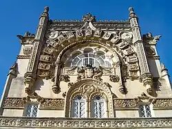 Detail of the Neo-Manueline façade of Palace Hotel of Bussaco (Casa dos Brasões).