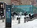 Other than St Enoch it is the only station with an underground ticket hall. Originally, the surface access to the station was located on the ground floor of an adjacent building on the east side of the street. This building was demolished in order to insert the moving walkway to Queen Street mainline station and today, a gift shop now stands on the site. In line with the pedestrianisation of Buchanan Street in 1977, two street level entrances were added - located in the middle of the former roadway during the modernisation scheme, with escalators serving the northern entrance and a staircase at the southern end of the ticket hall. The canopies were replaced in 1999 as part of the repaving of Buchanan Street - the northern canopy is constructed entirely of structural glass: all beams and columns, the walls and roof are glass.