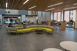 Facilities include: library, computer labs, science labs, teleconference center, art studios and workshops, TV studios, auditorium, early learning center, fitness center, gymnasium, cafeteria, and café.[7]