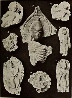 Remains of stucco relievos from wall decoration of various Buddhist ruins near Khotan.