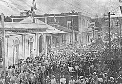 Upon learning of the efforts of the Trinitarios, at the beginning of 1844, Báez, who had good relations with Haitian officials, denounced Gabino Puello, brother of José Joaquín Puello, when he arrived in Azua with the January 16 manifesto. Puello escaped capture by the warning given to him by the future general Valentín Alcántara. As the proclamation of independence on February 27 clashed with his political plans, Báez tried to oppose it in Azua, which led to his arrest and sent to Santo Domingo.[7] He tried futilely to prevent the publication of a copy of the Dominican Act of Independence (1844) in Azua, and, in February, did not allow the flag of the newly Dominican state to be raised in the city plaza; in part, he was very pessimistic due to the numerical superiority of Haitians and thought that a rebellion against Port-au-Prince with no foreign support was futile. Báez and the other French supporters launched a manifesto – the text of which has been lost – on January 1, 1844, through which they called for the founding of the Dominican Republic under the protection of France. The progression of the work of Báez's group was what pushed the Trinitarios, led by Francisco del Rosario Sánchez, to establish an alliance with a sector of the conservatives headed by Tomás Bobadilla. Together they wrote the Manifesto of January 16, which also called for the constitution of the Dominican Republic, but as a sovereign state.[8] He changed his mind once he saw the popular fervor and decided that the time had come to part ways with Port-au-Prince.