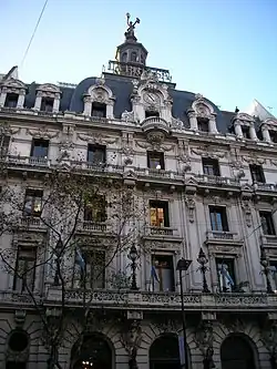 The outmoded headquarters of what was then Argentina's second-largest newspaper, La Prensa, led its influential proprietor in 1894, José Clemente Paz, to purchase a 1300 m2 (14,000 ft²) lot on the newly opened Avenida de Mayo, and he commissioned local architects Carlos Agote and Alberto Gainza to design a new headquarters at the site. Agote and Gainza, both graduates of the École Centrale des Arts et Manufactures, drew from their training in Paris to create a Beaux-Arts design, beginning with a façade inspired by French architect Charles Garnier.