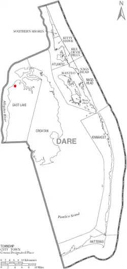 Buffalo City was a logging and moonshine town in East Lake Township, Dare County, North Carolina, United States. It was on the mainland, 19 miles (31 km) west of Manteo near present-day Manns Harbor. The marshy land where Buffalo City once stood, near U.S. 64, is now part of the Alligator River National Wildlife Refuge. The town's history lasted approximately 80 years from the 1870s to 1950s, but at one time Buffalo City's population of 3,000 in the early 20th century made it the largest community in Dare County.[1] A hotel, post office, schoolhouse, general store, 100 miles (160 km) of railroad track and rows of homes once stood on the now-abandoned area. Today, the only remnants of the ghost town include a road sign, rusted rails and building debris now overgrown with weeds.