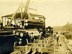 On October 11, 1889, the first post office was opened in Buffalo City. According to National Archive records, Charles A. Whallou delivered the mail to citizens of the town. Over the next decade, the forests surrounding Buffalo City were heavily depleted. The Buffalo Timber Company closed their operations and the post office was shut down in 1903. In 1907, the Dare Company purchased the forest and resumed logging operations. The post office was reopened on February 29, 1908. The town’s name was changed to Daresville, although the post office and citizens still used the Buffalo City title. The town's logging industry prospered throughout the 1910s and early 1920s. There were approximately 100 miles (160 km) of railroad tracks built throughout the logging area. Mules carried felled trees from lumber camps to the nearest railroad track. Freight cars then carried the wood to a transfer station at Milltail Creek and the barges took the lumber to sawmills in Elizabeth City.[1]