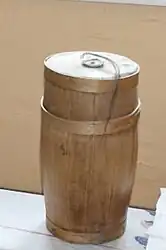 The buhay (Ukrainian: бугай) (also known as a bugai, buhai, berebenytsia, bika, buga, bochka) is a musical instrument that is used in Ukraine and is classified as a friction drum. Buhay is the Ukrainian word for great bittern (Botaurus stellaris), and its use as name of the instrument refers to the sound produced. The mating call or contact call of the male Buhay (Botaurus stellaris) is a deep, sighing fog-horn or bull-like boom with a quick rise and an only slightly longer fall, easily audible from a distance of 3 mi (4.8 km) on a calm night.
