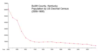 Graph of Bullitt County population by decade