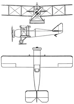 The RB.1 was a simple, conventional, two-bay biplane with thin-section, equal span wings mounted without stagger. One feature of the design was the interchangeability of components; as an example, the wing panels were identical. Such interchangeability reduced the stocks of spares required. The lower wings were attached to the lower fuselage structure and the upper ones to a fuselage-wide centre section held well above the fuselage by four upright cabane struts from the upper fuselage. Both upper and lower wing-sets were mounted with 3° of dihedral and were braced together with two pairs of identical, parallel interplane struts on each side, assisted by the usual wire cross-bracing. Both had short, broad-chord ailerons which reached the wingtips and were externally interconnected. Structurally, each wing was built around two spruce spars and had plywood-covered leading edges.[1]