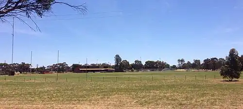 The formation of the Bunnaloo Football Club was first announced when an advertisement appeared in the Riverine Herald (the local Echuca newspaper), asking for umpires for the soon-to-be-formed W F Association, a football league.[3] In 1927, the Wakool Walliston Bunnaloo Football Association was formed featuring four teams: Wakool, Walliston, Bunnaloo and Caldwell. This was Bunnaloo's first football team, with J Keech acting as captain.[4] In 1929 the league was renamed the Womboota and District Football League, with Womboota replacing the team from Walliston.[5] Bunnaloo finished the season in first place, but lost the premiership to Wakool.